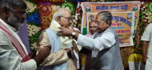 इस दौरान धनंजय पाण्डेय ने मुख्य अतिथि पूर्व मंत्री नंद किशोर यादव को शॉल और सूर्य मंदिर का प्रतीक चिन्ह देकर सम्मानित किया । पुस्तक लोकार्पण समारोह सह प्रबुद्ध सम्मेलन में भाजपा के पूर्व मंत्री नंद किशोर यादव ने लोकार्पण करते हुए कहा कि प्रधानमंत्री नरेंद्र मोदी के नेतृत्व में देश की एक बड़ी आबादी को कोरोना जैसी महामारी में गरीब परिवार के लोगो को राशन मुहैया कराया गया ।