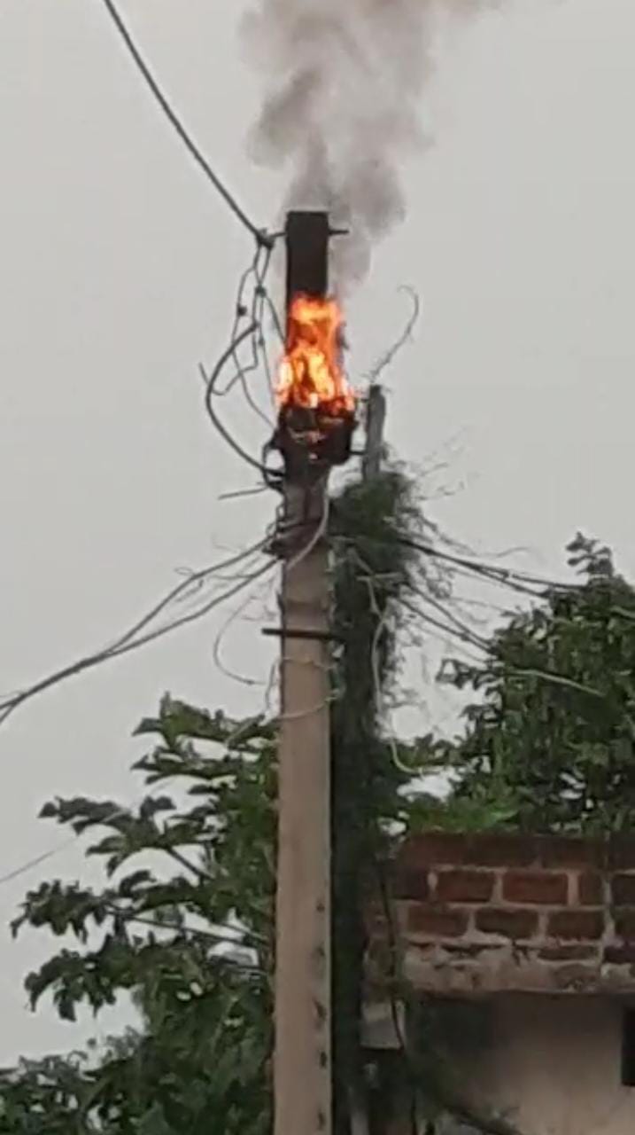 इलेक्ट्रिक पोल में हुआ विस्फोट,बिजली के खंभे में लगी आग, सुधार कार्य के कारण कई घंटे तक बंद रही बिजली…